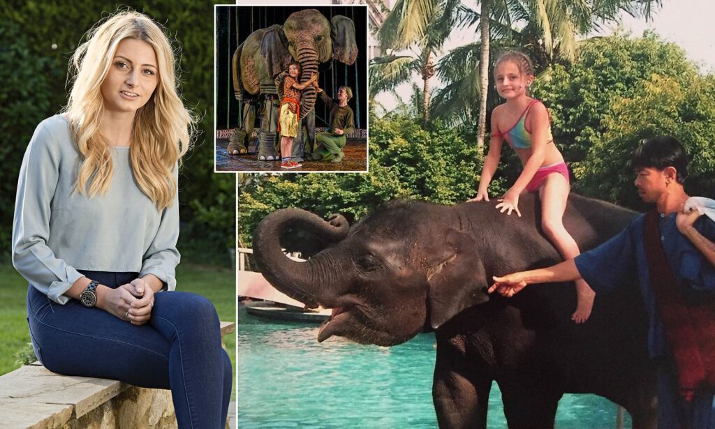 Amber Owen on Ning Nong the four year old elephant.