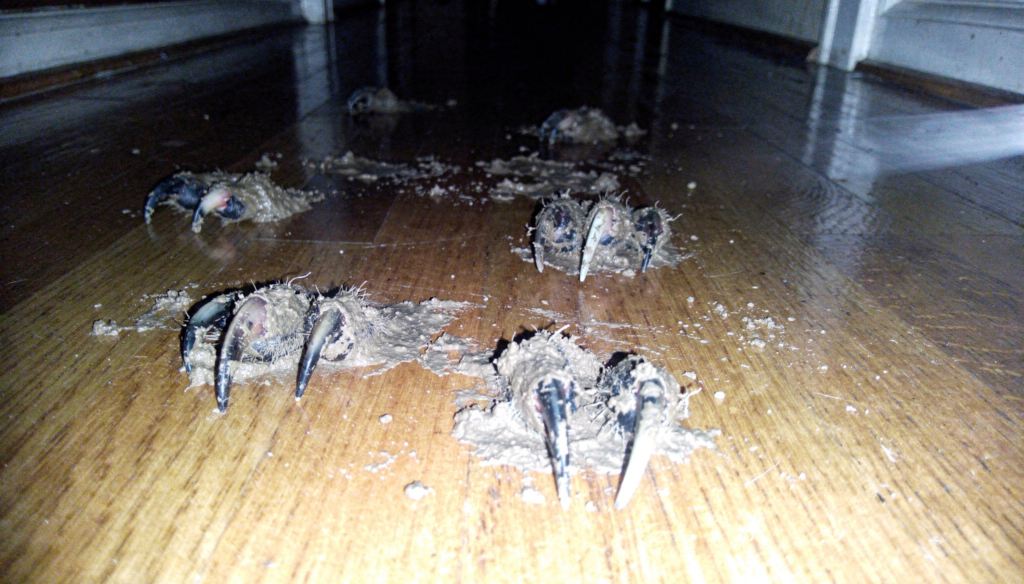 We tracked the mud past the kitchen, our ears straining for any sound of breathing or movement in the walls. Every creak of the old farmhouse sounded like a footstep from the thing we were hunting.